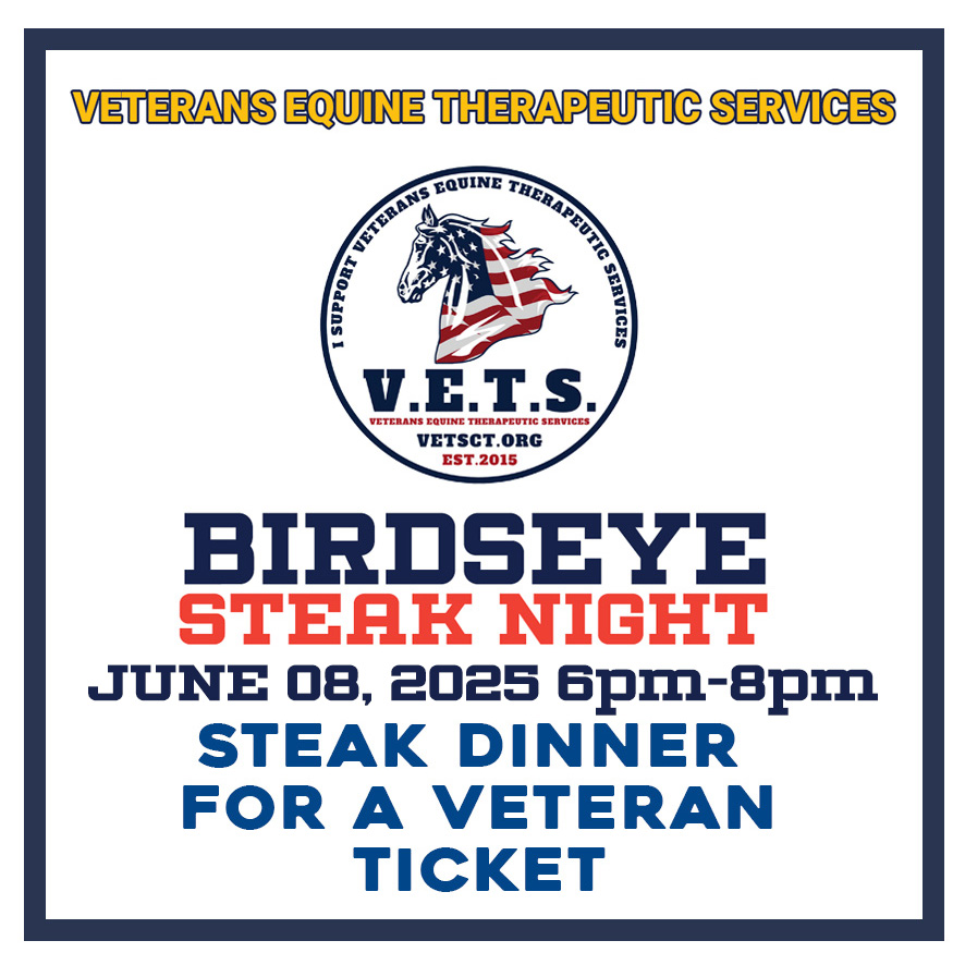 Show your thanks and buy a Veteran a free steak dinner on you by purchasing an extra ticket and we will see that the ticket is presented to a local veteran.